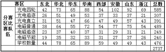 各分(省)赛区参赛队数为有效参赛队数,若省赛区每个学校允许参赛队伍数大于分赛区规定数目的,按照分赛区统一的规则进行计算。高职高专参赛队伍不计入分(省)赛区的有效参赛队伍数。